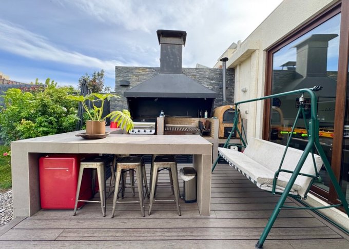 - Espacios exteriores e interiores: balcón, gran espacio para jardín, terraza y quincho en obra, piscina con bomba de calor.