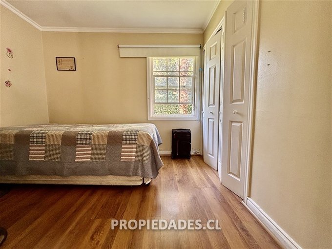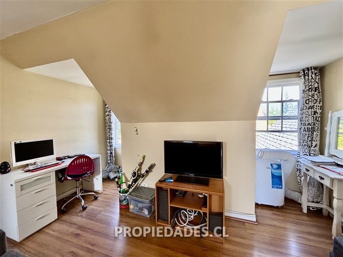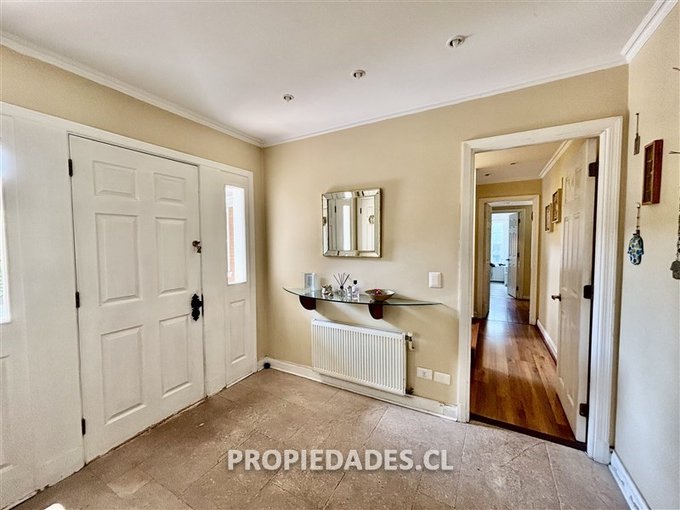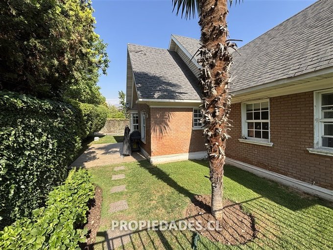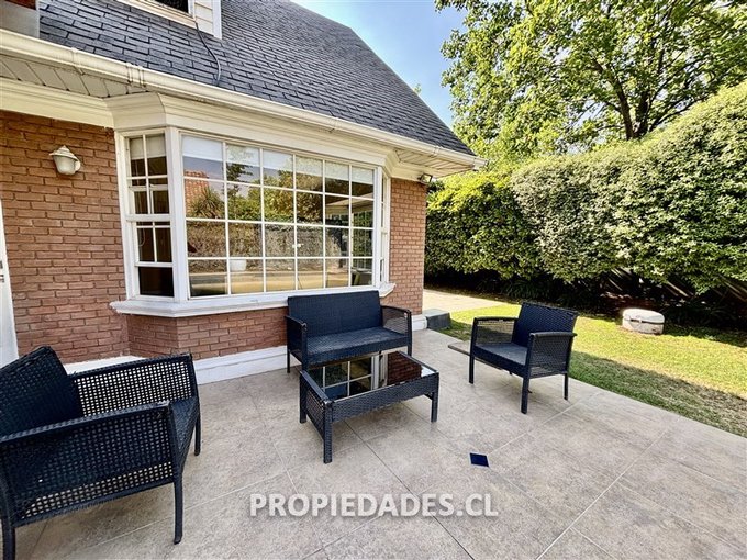 Terraza techada, gran jardín que rodea la casa, piscina, estacionamiento para 4 autos.
