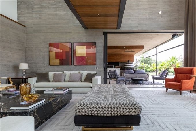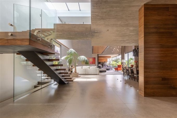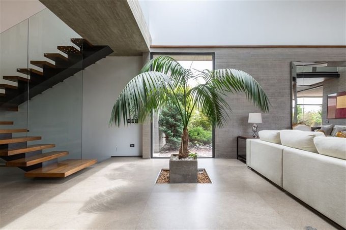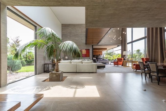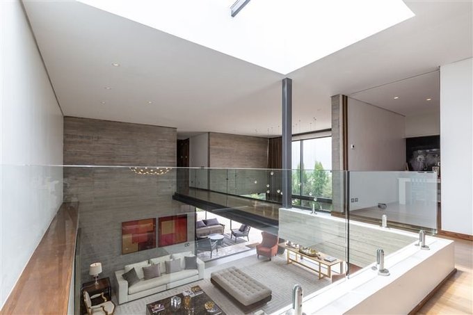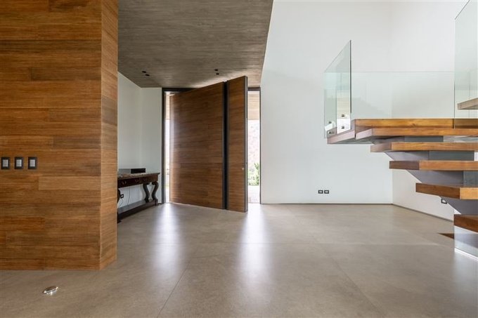 Imponente acceso a una planta abierta de doble altura donde se distribuyen los distintos espacios de manera armónica, donde destacan su arquitectura y terminaciones.