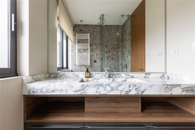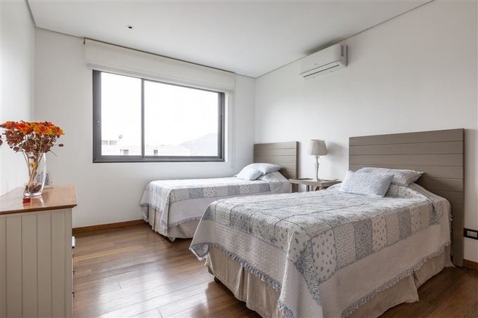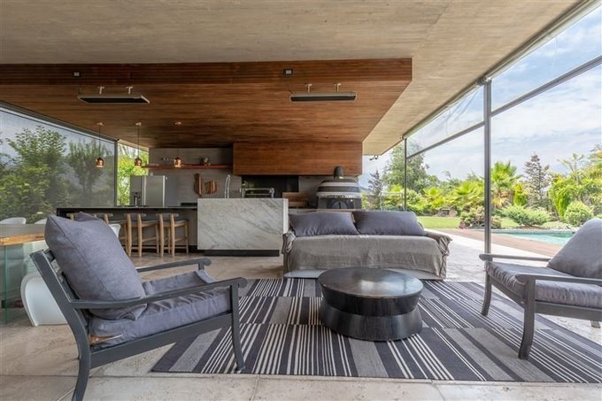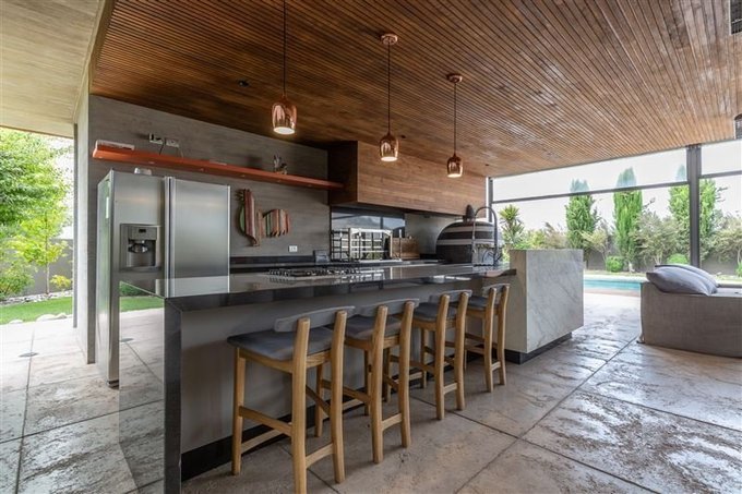 Living y comedor con salida a amplia terraza donde se distribuye un estar, gran comedor y moderno Quincho con isla central con cubierta de granito totalmente equipado y un fantástico horno para pizzas traído especialmente desde Nápoles-Italia.. Este espacio se integra al living comedor a través de los ventanales abatibles generando así un gran espacio acogedor y familiar para disfrutar.