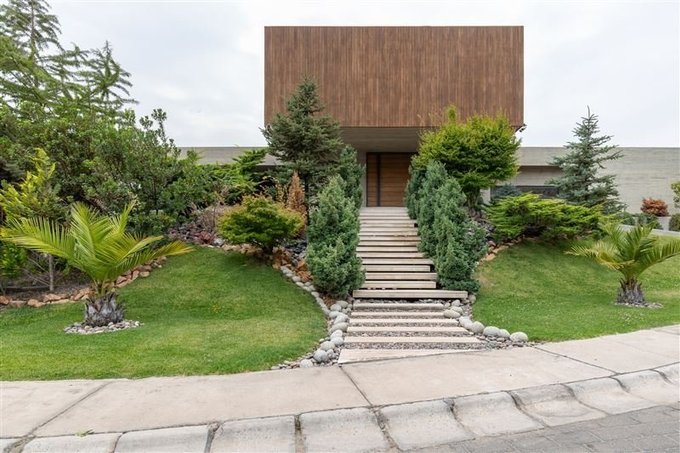 Casa Contemporánea del Arquitecto Cristián Sagner construida en hormigón a la vista y el segundo piso con revestimientos en madera tratada.