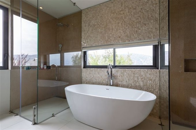 Los vidrios de los ventanales fijos (con vista a la piscina) fueron fabricados con tecnología Low-e para la mantención del sistema térmico