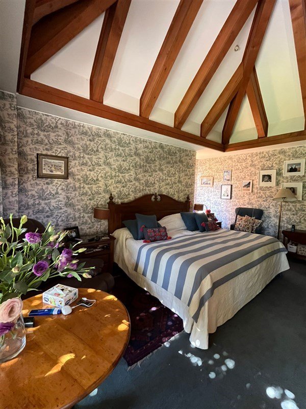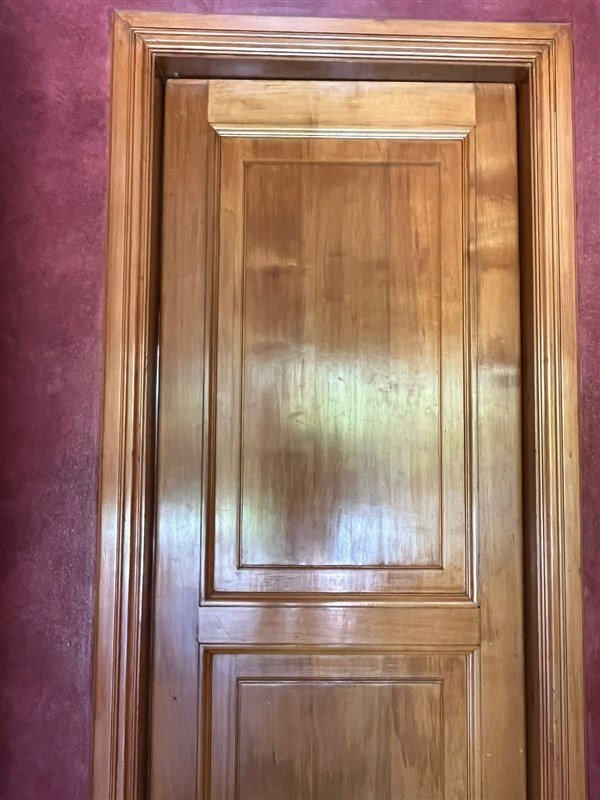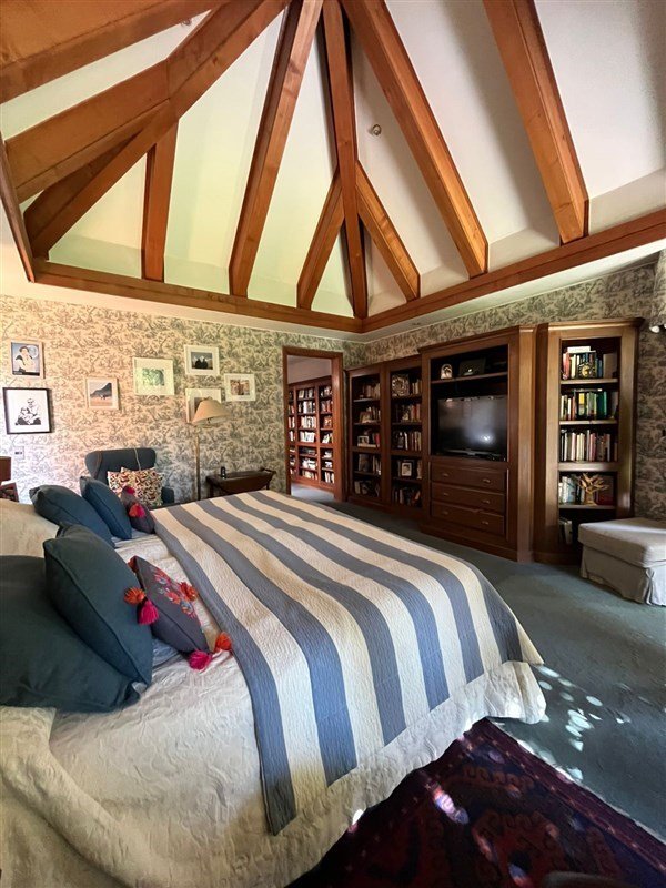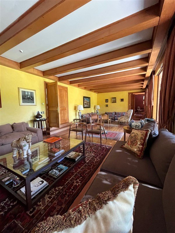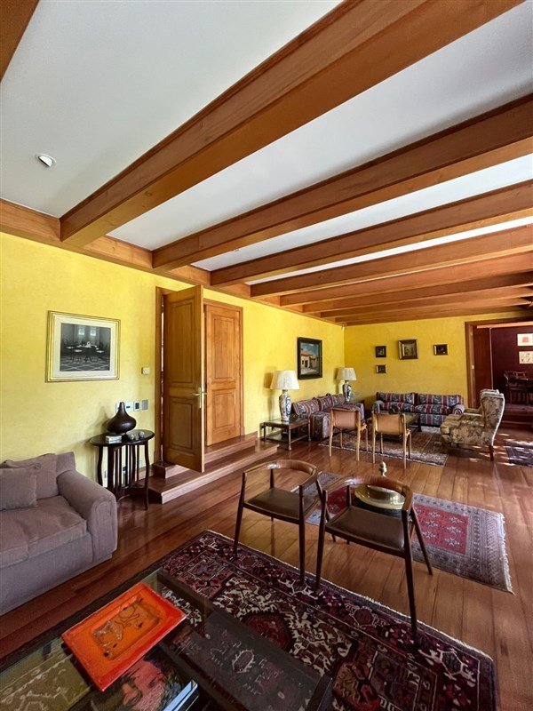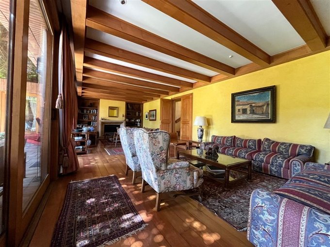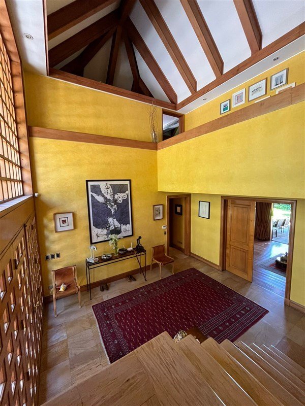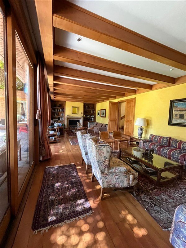 Detalles: empapelado de muros con tela, pisos de madera nativa,vigas de madera interior y exterior, mármol.