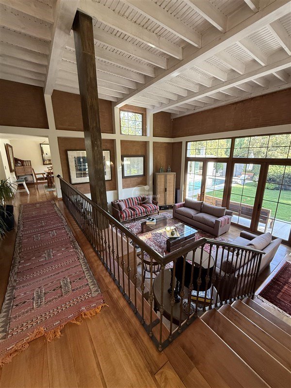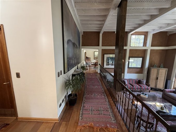 Increíble casa en Santuario del Valle, Lo Barnechea! Con una ubicación privilegiada, esta propiedad cuenta con 5 dormitorios, 6 baños y escritorio en 420 m2 construidos y 840 m2 de terreno. Cuenta además con piscina, quincho y un gimnasio/estar en el subterráneo.