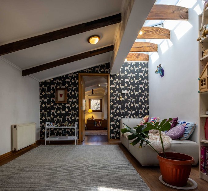 - Sala de estar iluminada con lucarnas