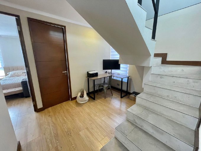 Tiene una caja escala / salita que actualmente esta equipada como escritorio.