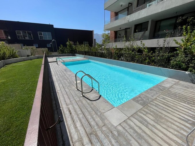 Edificio Jardín Costanera con equipamiento de alto estándar: gimnasio profesional, piscina exterior, sala gourmet, sala de niños, quinchos, sala de cowork, canil de mascotas, seguridad 24/7 y amplios estacionamientos de visitas. Excelente ubicación en Lo Barnechea, a pasos de Costanera Norte, Portal La Dehesa, Clínica Alemana y colegios Los Alerces y Newland. Departamento casi nuevo, con uso mínimo y terminaciones de primer nivel.