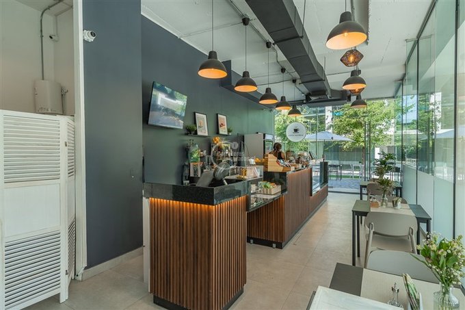 En el local funciona una cafetería de estilo , contrato vigente hasta Julio del 2027.