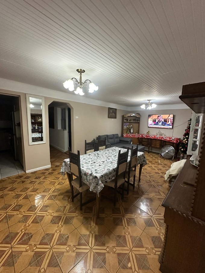 Casa con una superficie total de 274 m² y 158 m² de superficie útil, distribuida en espacios funcionales y definidos. El área principal incluye un living-comedor, con piso de diseño geométrico y luminarias centrales, que conecta con un pasillo que da acceso a las distintas habitaciones. La propiedad cuenta con cuatro dormitorios, cada uno con acabados y pisos diferenciados, permitiendo diversas opciones de uso y distribución. El baño está equipado con lavamanos, espejo y ducha, y presenta un espacio amplio y práctico. Tambien cuenta con un amplio espacio de lavandería.