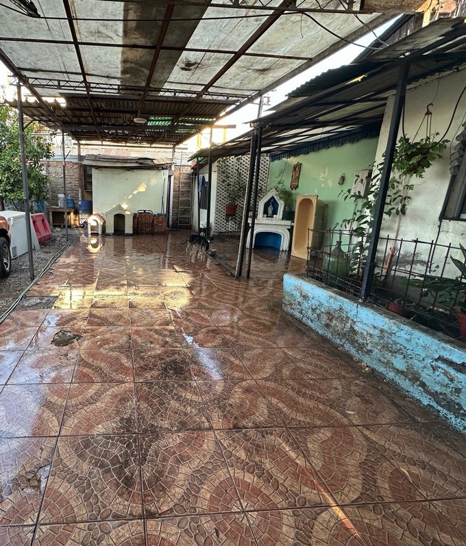 En el exterior, se encuentra un patio cubierto y áreas abiertas, con piso cerámico y espacio para actividades al aire libre. La propiedad cuenta con 2 portones de acceso manuales.