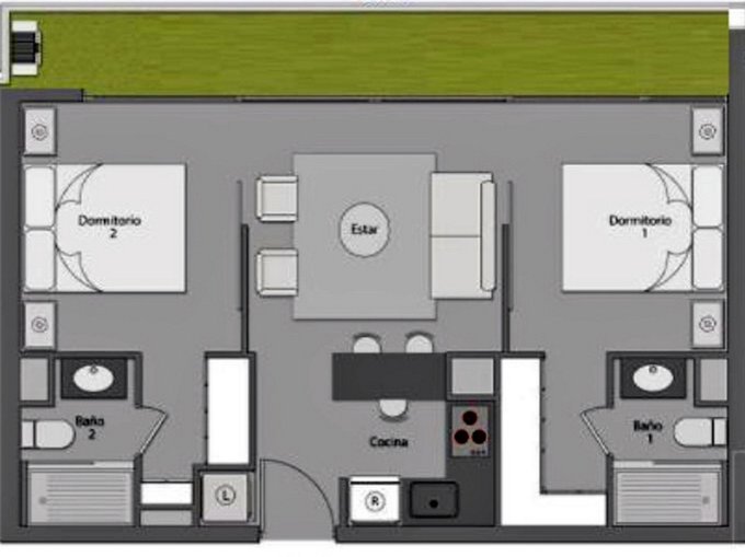 - Dormitorios simetricos, ambos con espacio para cama de 2 plazas y closet empotrados