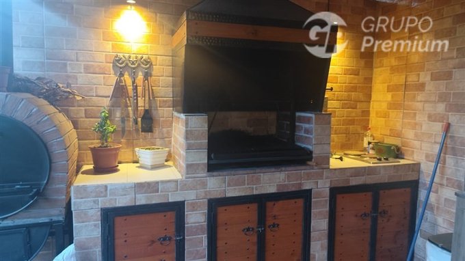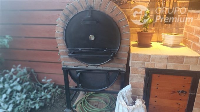 Exterior : quincho con horno de barro , hermoso meson , pasto natural , todo con una hermosa decoracion moderna.
