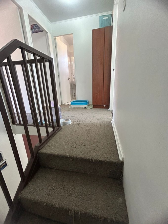 Accedes al segundo piso con una escalera alfombrada, con pasamanos, luego tienes un descanso amplio. Allí tienes: