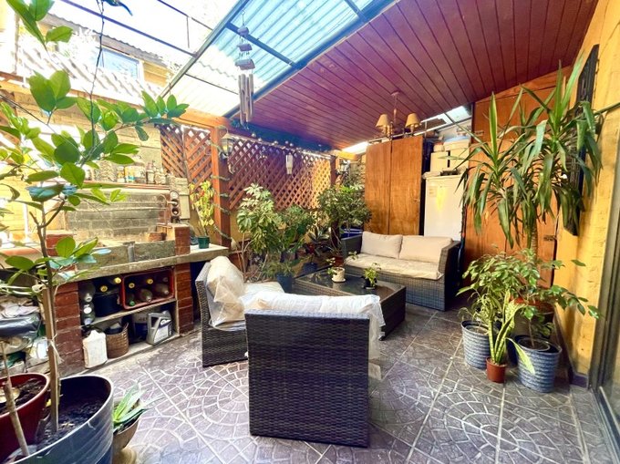 Patio con acogedora terraza con cobertizo, además de un sector con parrilla.