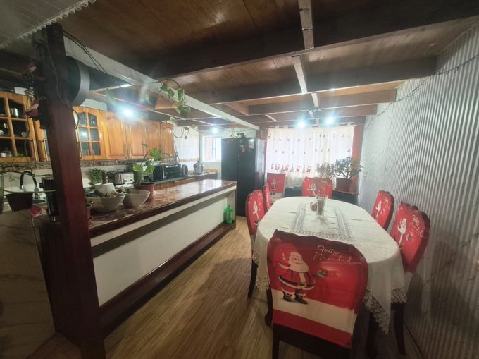 Gran cocina amoblada con excelente distribución y vigas a la vista