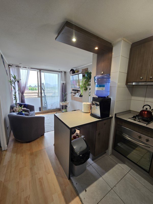 Departamento en venta Frente al Mall Arauco Maipú, en el condominio Jardines de Vespucio, cuenta con 35 m2 distribuidos en 1 dormitorio amplio en suite con walking closet, cocina americana con horno, campana y cocina de 2 quemadores, vista poniente totalmente despejada con Balçón, incluye estacionamiento y bodega propios. este departamento es ideal para inversionistas o si estas buscando tu primera vivienda, actualmente esta arrendado a un muy buen precio y con excelentes arrendatarios.