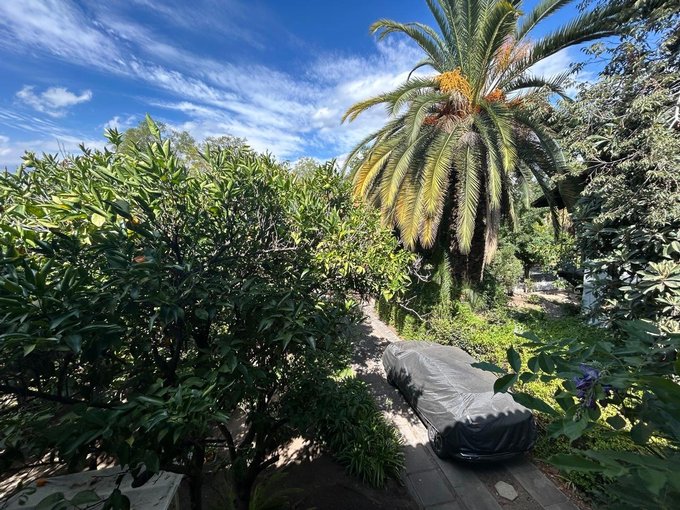 Estacionamiento para 4 autos, lindo patio con antejardín, árboles frutales, arbustos, árboles ornamentales y nativos, gran patio posterior con 2 amplias .