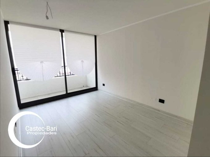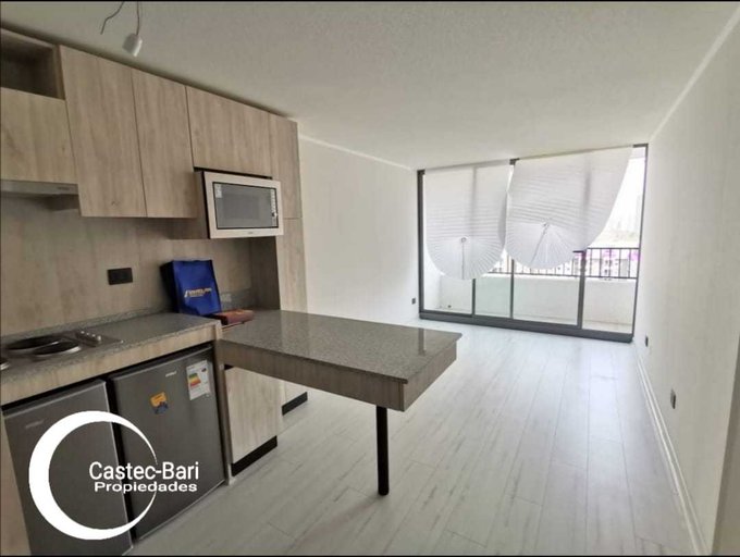 Cómodo Departamento con comedor y cocina integrada y equipada; cocina encimera 4 platos, horno empotrado, microondas, cubierta granito, comedor.