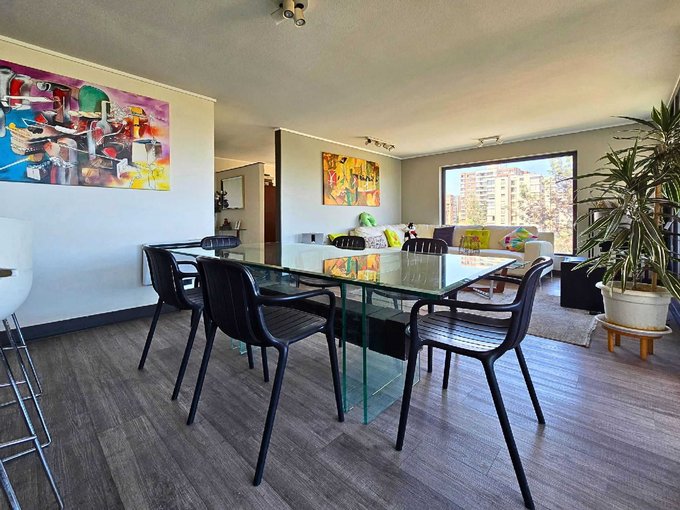 Living comedor: con piso flotante y salida a terraza con ventanas de cristal plegables.