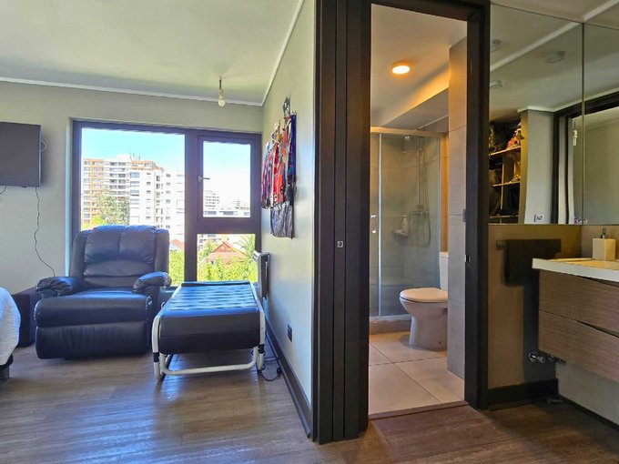 Dormitorio Ppal. en suite, medidas: 3,02 x 4,30 mts, c/ walking closet y salida a terraza.