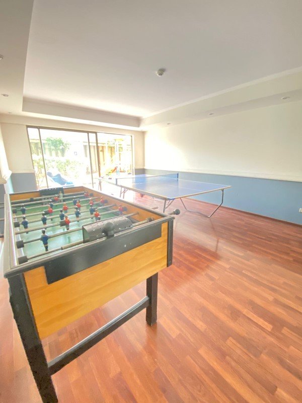 El edificio cuenta con ascensores, conserjería 24 horas circuito cerrado de Tv, áreas verdes, lavandería, sala de cine, Piscina, quincho, áreas de juegos de niños, Gimnasio, sala de eventos.