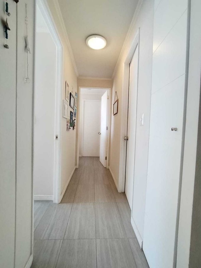 El departamento cuenta con 2 closets adicionales en pasillos con conexión a lavadora, bodega en L de medidas 2x2 mts y estacionamiento en superficie.