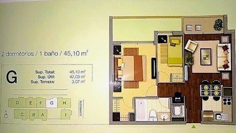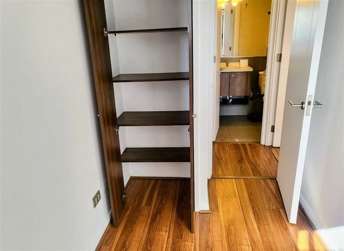 El departamento cuenta con 2 habitaciones, principal con amplio Walk in Closet, segunda habitación para cama de Una plaza + velador, un baño completo, conexión para lavadora, cocina americana equipada con encimera de 2 hornillas, mesón de granito, campana y horno eléctrico. Living comedor con salida hacia una luminosa terraza con vista al norte, ventanas de aluminio, agua caliente por termo electrico y piso flotante en todo el departamento. Gastos comunes $70.000 Aprox.