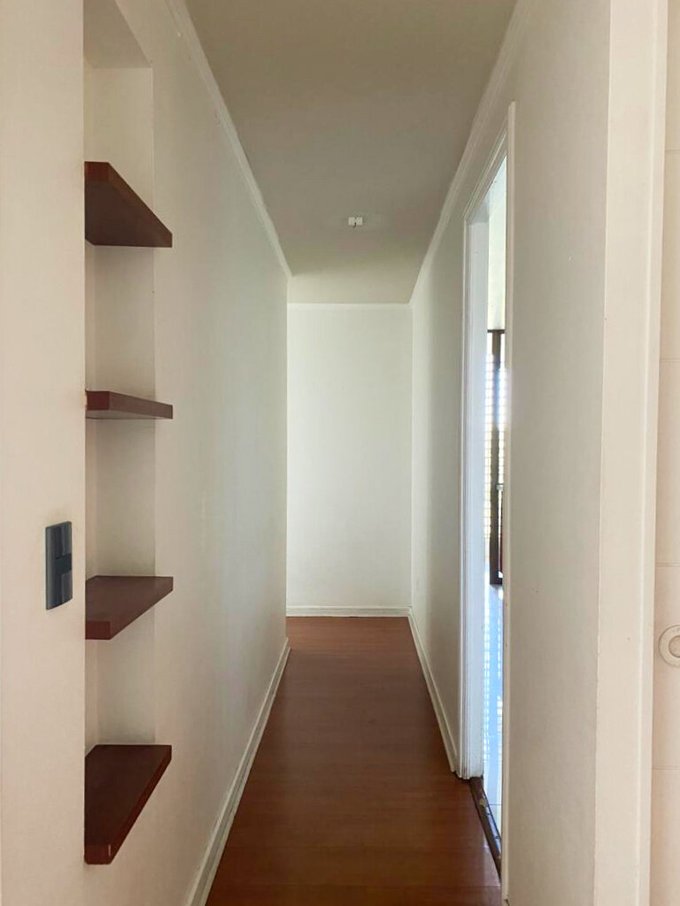 Living comedor con piso flotante con repisa empotrada y salida a amplio balcón con vista sur.
