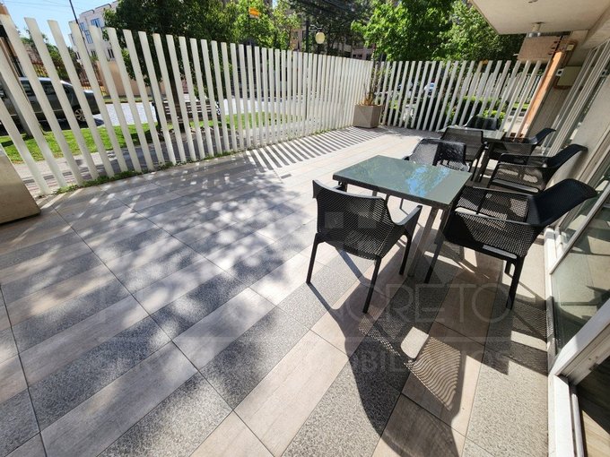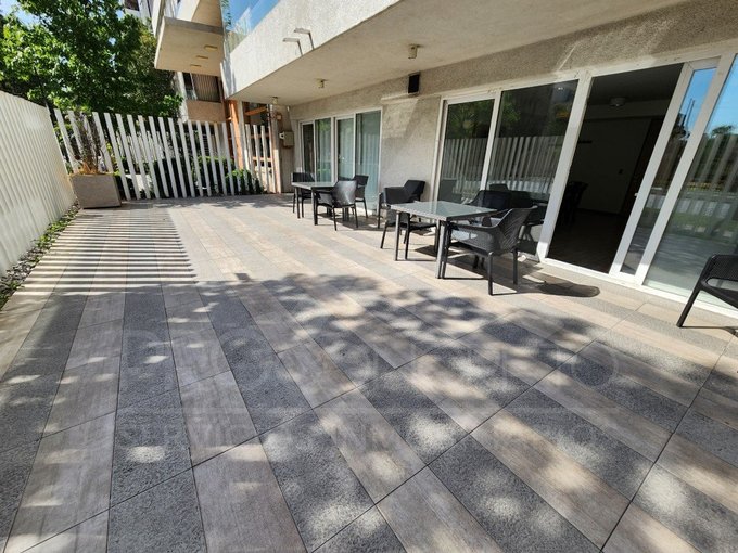El departamento posee una superficie total de 45 m, de los cuales 7 m corresponden a una terraza semicubierta cerrada con ventanales de aluminio deslizantes y malla de seguridad, que se extiende desde el living hasta la habitación principal en suite.