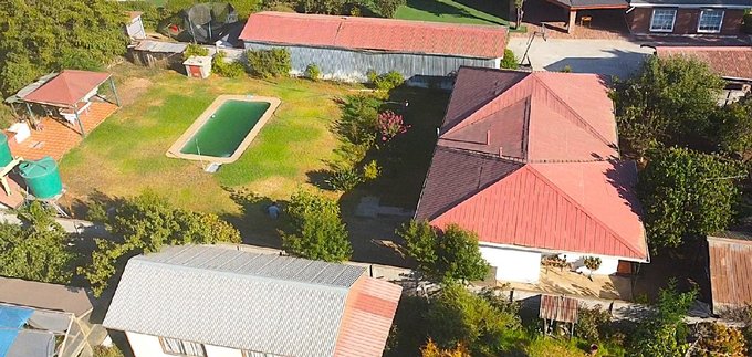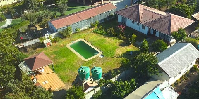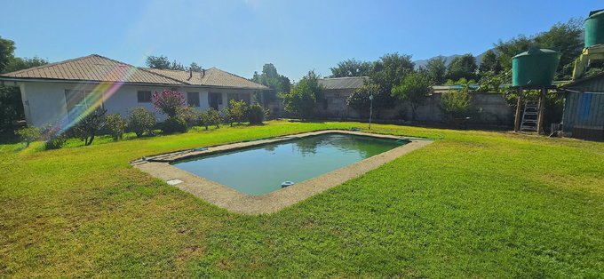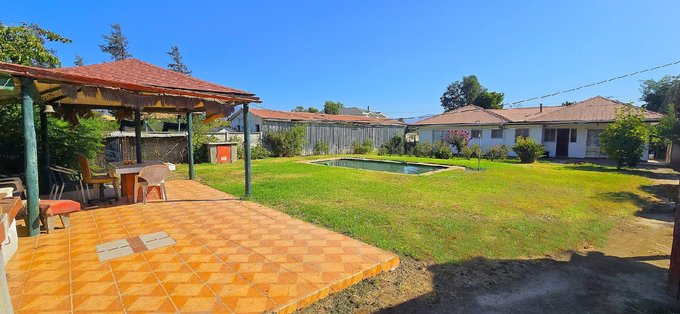 20x23 mts con cesped, piscina rectangular de 4x14 mts, 2 hidropacks en altura, una bodega pequeña y un gran quincho techado, todo ideal para grandes eventos.