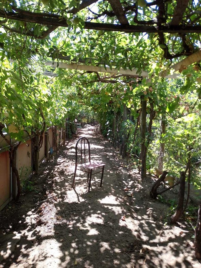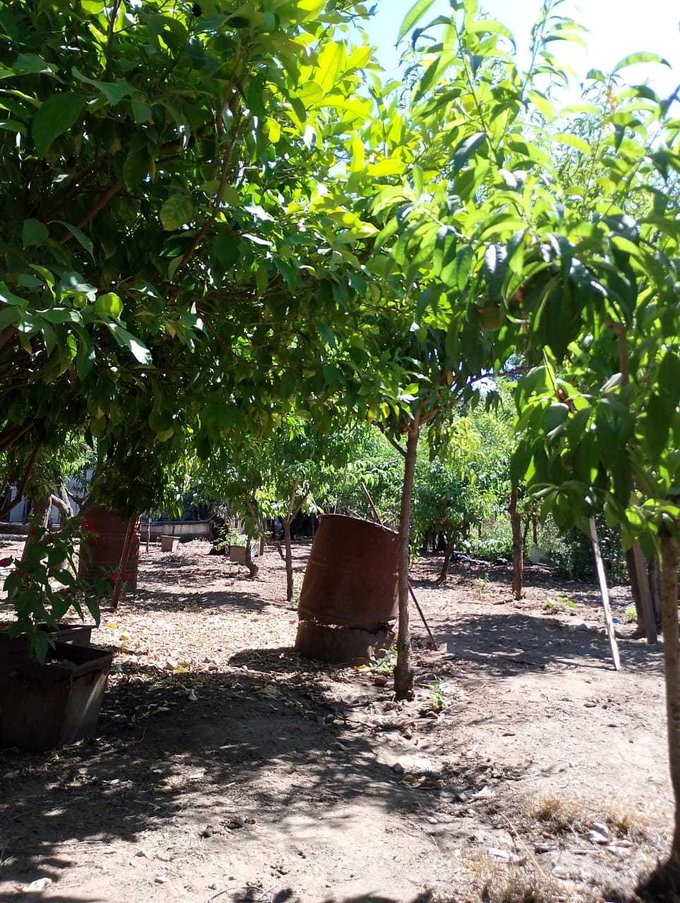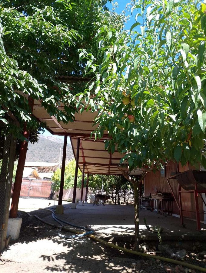 Rodeada de árboles frutales que además regalan su sombra y frescura, la propiedad ofrece un entorno natural privilegiado. Su terraza en altura permite disfrutar de vistas despejadas al paisaje rural, donde los sonidos de la naturaleza reemplazan al bullicio urbano.