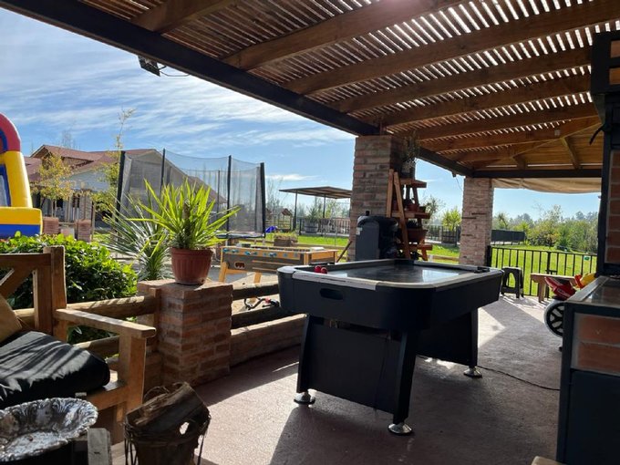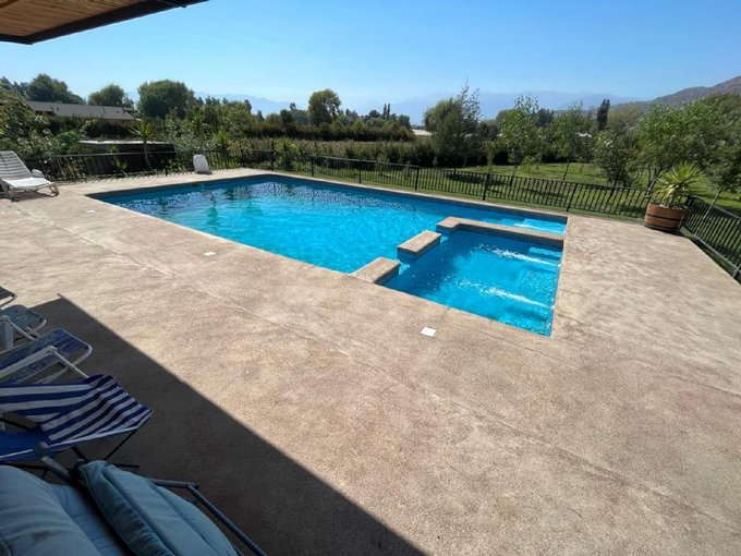 Se vende hermosa parcela ubicada en camino Chada, comuna de Paine, cuenta con una superficie de 5.300 m2, rol propio, además tiene dos propiedades de las cuales una es de 140 m2 construidos y la segunda propiedad es de 400 m2, la cual se esta terminando de construir, la construcción de la piscina es estructural enfierradura y la casa es de ladrillo de cauquenes mas anchos 25 cmt enfierradura de 12 mandados todo con hormigón de base.