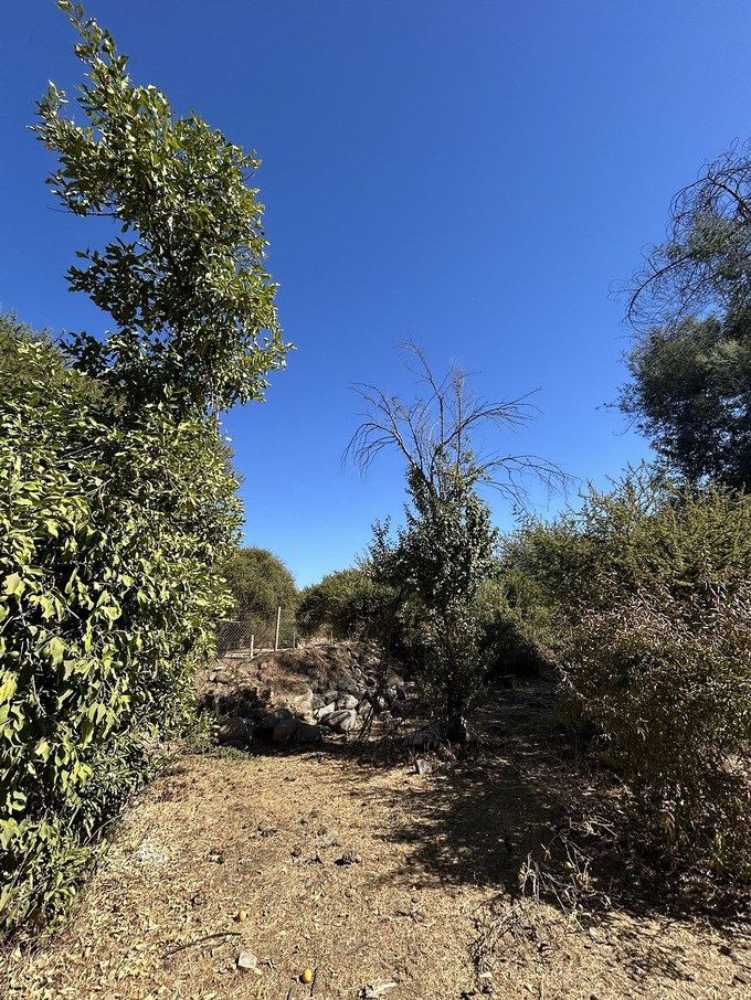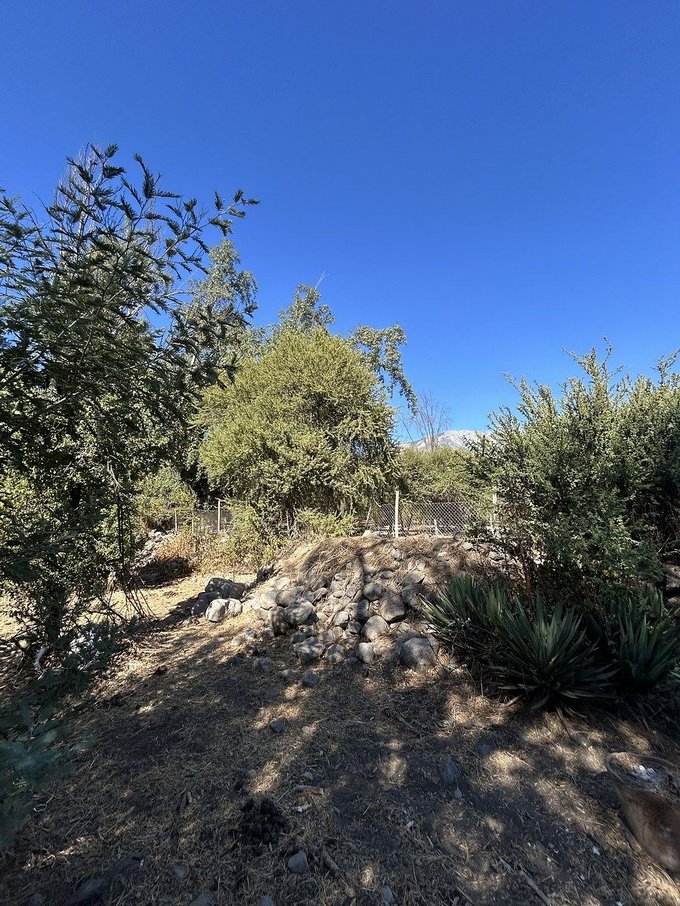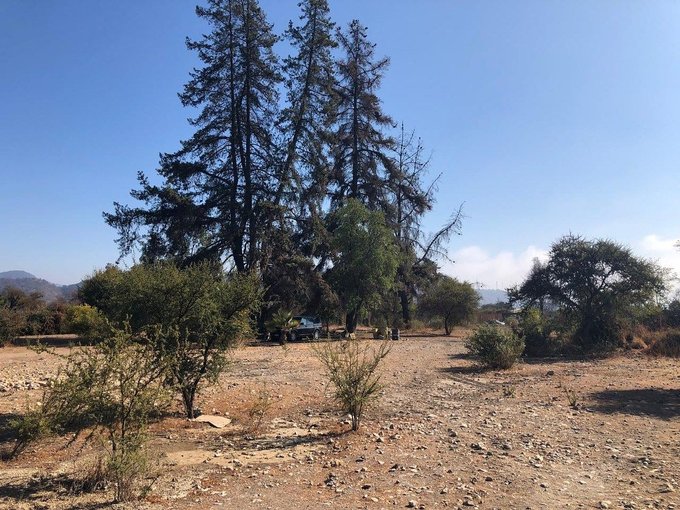 Precioso terreno plano de 13.000 m2, con pozo profundo de 40 m., con tubo de 6" de diámetro, noria de 15 m. profundidad, estanque en altura, luz con empalme directo CIA, casa abandonada de 240 m2, árboles frutales y otros añosos, parcela cercada y piscina.