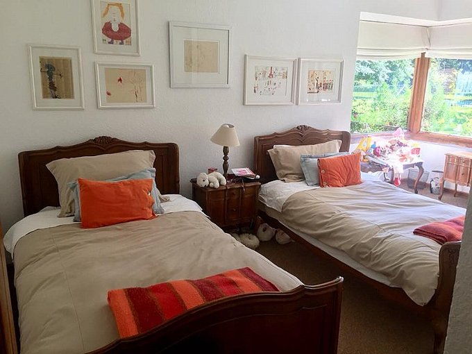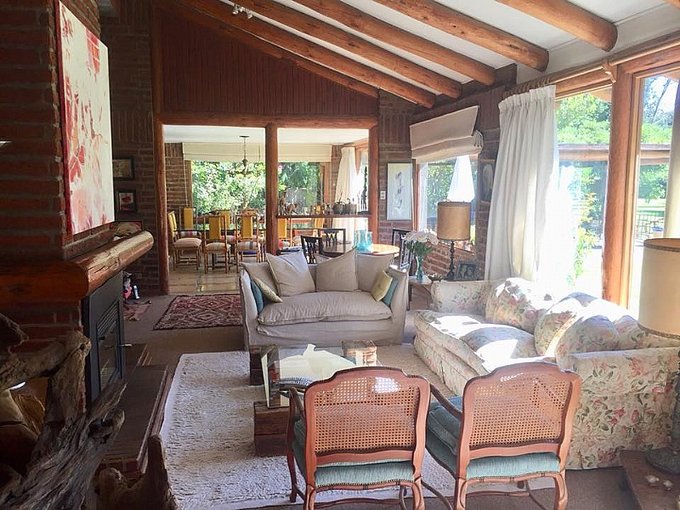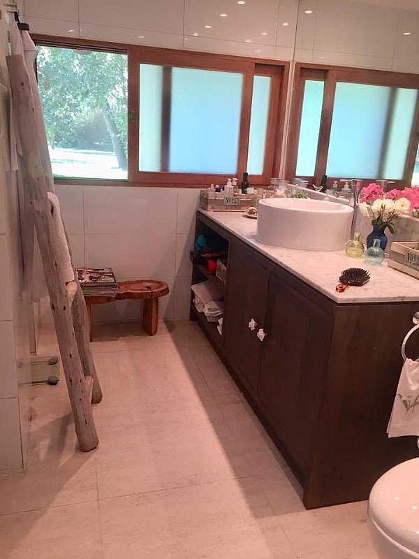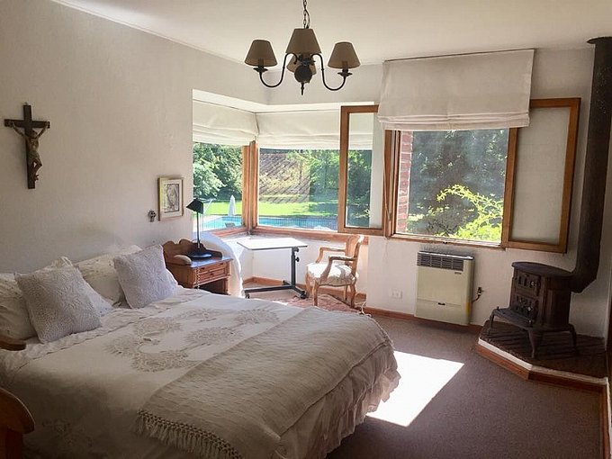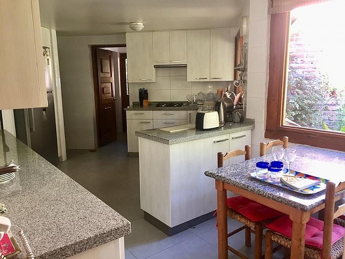 Casa 250 m2 en terreno de 5.000 m2, 4 habitaciones, 3 baños (considera baño de visita), dormitorio principal en suite, dormitorio de servicio incluye baño, dormitorios con alfombra y baños con piso cerámico, sala de estar.
