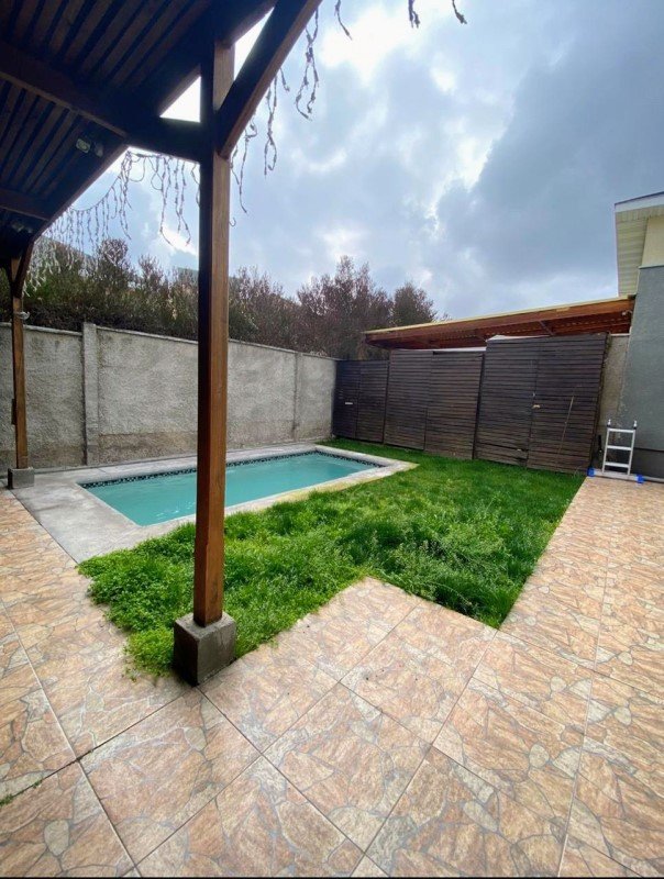 Esta casa incluye una amplia cocina abierta remodelada por completo, con cubierta de cuarzo, barra desayunadora, conexión lavavajillas, comedor, suite principal, sala de estar, patio, closets, lavandería, vestidor, baño de visitas y estacionamiento para dos autos. Cuenta con un jardín posterior, con bodega y una cómoda piscina familiar. Además, tiene áreas verdes con juegos infantiles, alarma y portón eléctrico. Una excelente oportunidad en una comuna tranquila y familiar como Peñalolén. No te la pierdas!