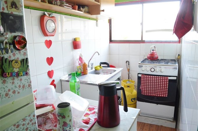 2 Dormitorios, 1 Baño, cocina independiente, living comedor. Estacionamiento común. 50 mts. Totales.