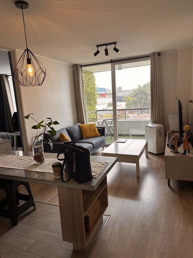 - Comodidades: Barra para desayunar, balcón, cocina equipada.