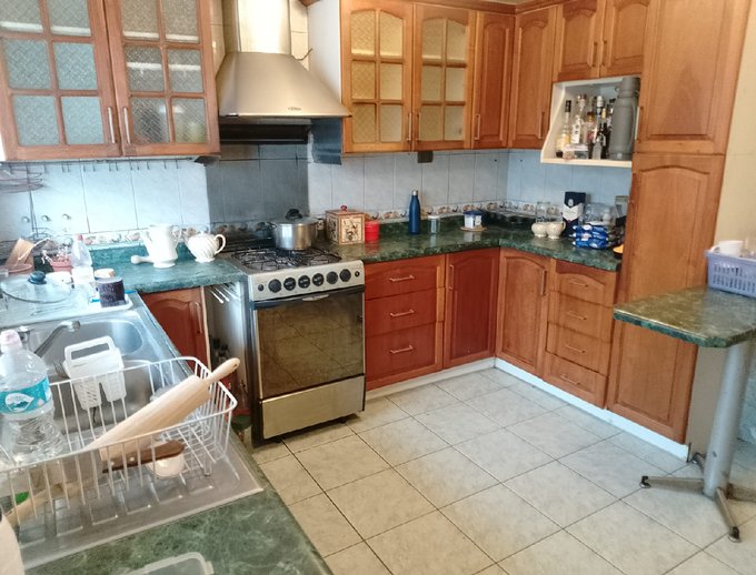 Cocina indpendiente grande con muebles de cocina. Logia y sala de lavado. Piso de ceramica en cocina, baños y Living comedor, alfombra en piezas.