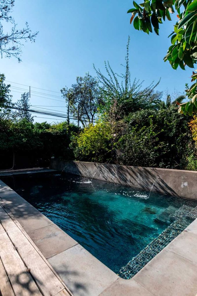 La casa cuenta con piscina de hormigón revestida en mosaicos, con bomba de calor; deck de pino radiata tratado con tecnología holandesa de acetilación, jardín y patio duro adoquinado.
