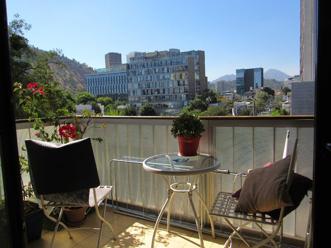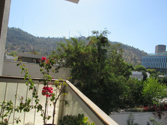 Amplia terraza al costado de dormitorio principal, con vista hacia Virgen del San Cristóbal, teleféricos y hacia el oriente, soleado.