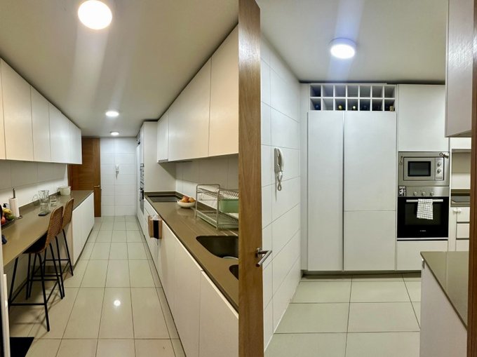 - Cocina Amoblada con amplio refrigerador empotrado que le da elegancia y versatilidad
