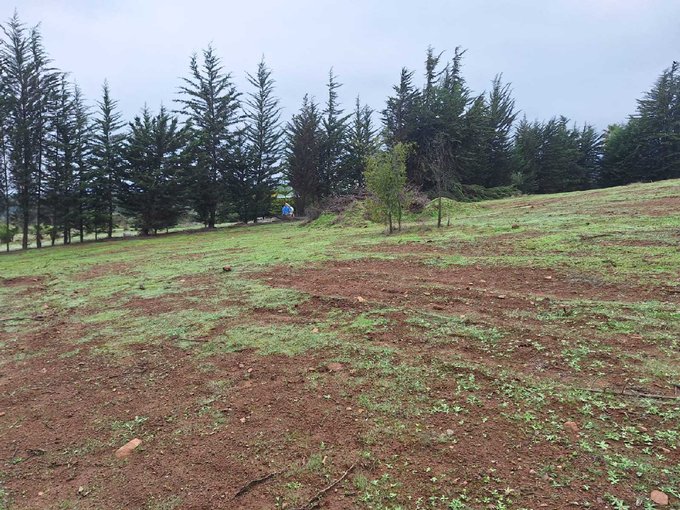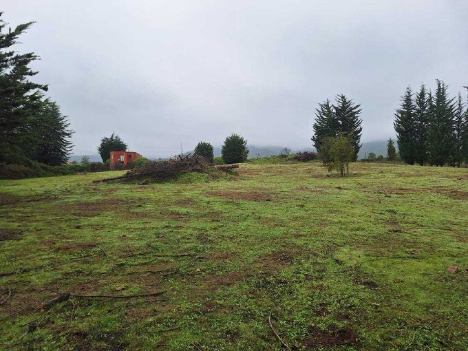 Terreno con altura, hermosa vista al valle. Cerco natural de pinos y mallas.