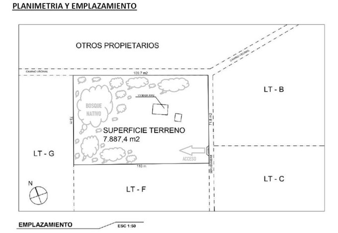 - Superficie edificada: Posee cabaña 2D1B de 47 m2 (Regularizados) en estructura ligera.