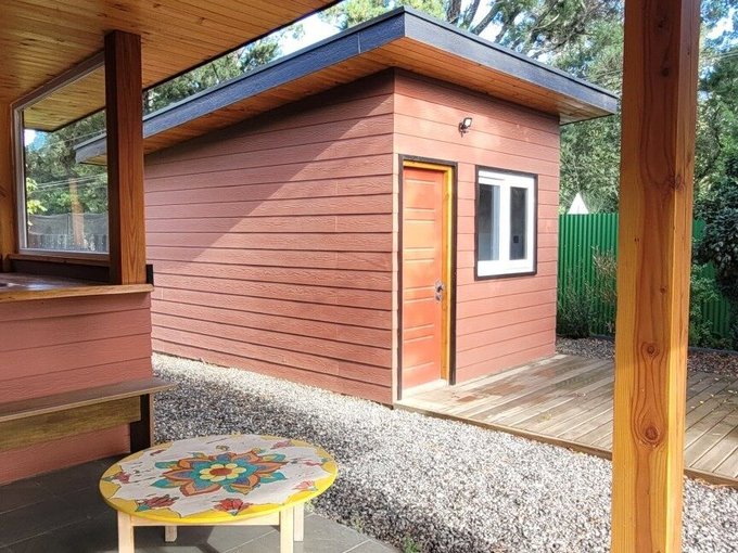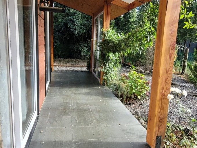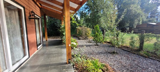 Características de la propiedad: -Superficie construida: 104 m -Terraza techada: 15 m -Terreno: 600m2 -Antigüedad: 2 años -2 dormitorios (principal en suite) -2 baños -Cocina americana integrada -Amplio living-comedor con excelente iluminación natural -Calefacción a pellet -Espacio adicional que puede usarse como bodega o como oficina -Terraza techada de 15 m -Estacionamiento para hasta 4 vehículos.
