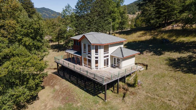 Esta impresionante casa nueva, lista para habitar, se encuentra en la tranquila y turística localidad de Panqui, un hermoso valle reconocido por sus termas, su arte, su cultura y sus paisajes únicos en la comuna de Curarrehue, Región de La Araucanía.