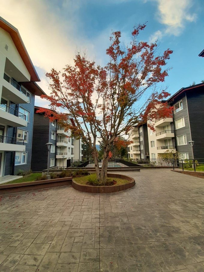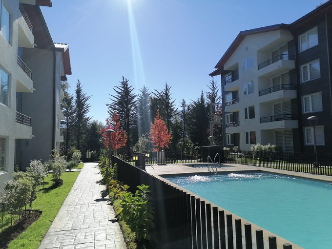 VALMANIC PROPIEDADES vende cómodo y moderno departamento completamente amoblado, ubicado en el 1° piso de un edificio con ascensor en condominio consolidado, rodeado de bosque nativo y a minutos del centro de esquí y todas las maravillas de Pucón.