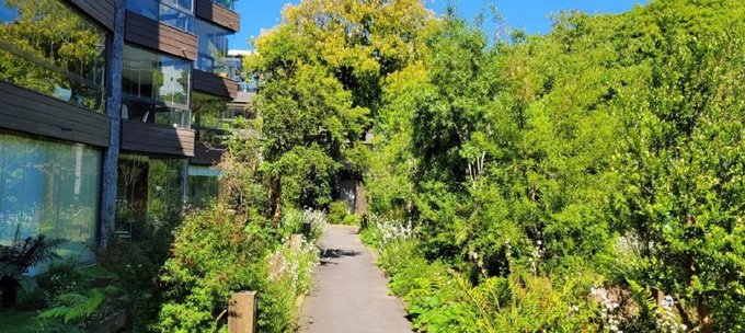 Todo muy bien cuidado con la excelente jardinería del lugar.