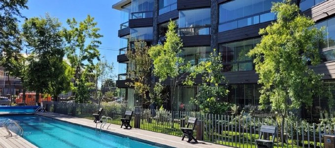 El Condominio cuenta con Lavandería, Ascensor, Conserjería 24 hrs ,2 piscinas una de ellas temperada , Hermosos Quincho, Sala multiuso.