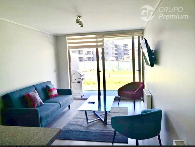 Amplio living con salida a terraza, que mira a las áreas verdes del condominio.