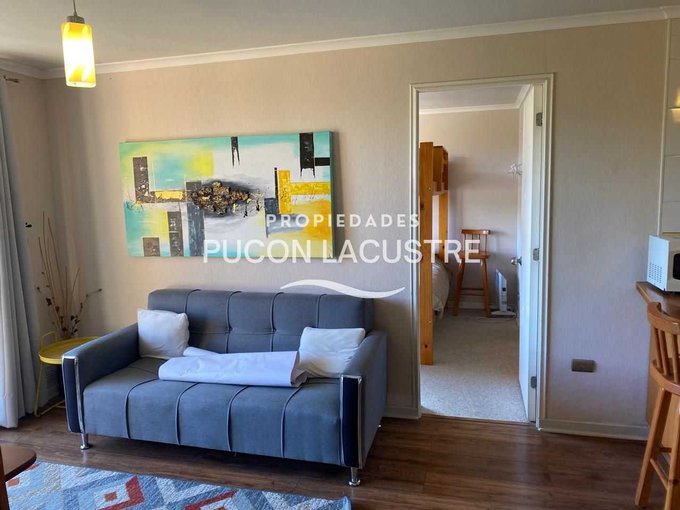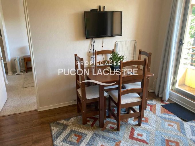 No pierdas la oportunidad de adquirir este hermoso departamento en venta dentro de Condominio, ubicado en camino subida al Volcán Km 1, en la comuna de Pucón. El departamento se encuentra en una zona muy tranquila y cercana a servicios básicos como ser supermercados, colegios y áreas verdes y con un expedito acceso al centro de Sky del Volcán Villarrica. Este acogedor departamento cuenta con 2 dormitorios, 2 baños, balcón y 58 m2 construidos, además de estacionamiento, y bodega. Perfecto para disfrutar de unas increíbles vacaciones o como inversión para arrendar. Su distribución es práctica y moderna, ideal para disfrutar de la tranquilidad y el entorno natural que ofrece Pucón. Cuenta con una muy buena aislación con ventanas de termo panel y PVC y esta completamente amoblado. El Condominio cuenta con acceso controlado, seguridad 24 hr, 2 piscinas al aire libre, 2 quinchos, una multi cancha. VALOR UF 3.200.-